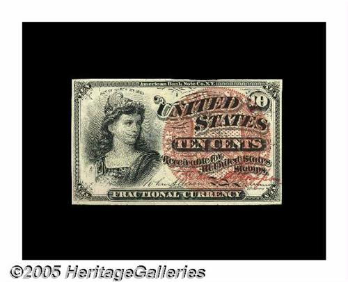 <B>Fr. 1258 Milton 4R10.3d 10¢ Fourth Issue Courtesy Autograph Choice New.</B></I> Carmi Thompson's bright red autograph appears directly above the engraved signatures.