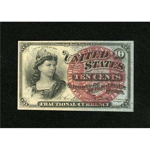 <B>Fr. 1259 10c Fourth Issue Very Choice New.</B></I> This is a very fresh and bright example which has retained strong embossing. Only better centering keeps the gem grade out of reach.<BR><BR><b>Shipping:</b> Coins & Currency (<a target="_blank" href="http://www.heritageauctions.com/common/shipping.php">view shipping information</a>)