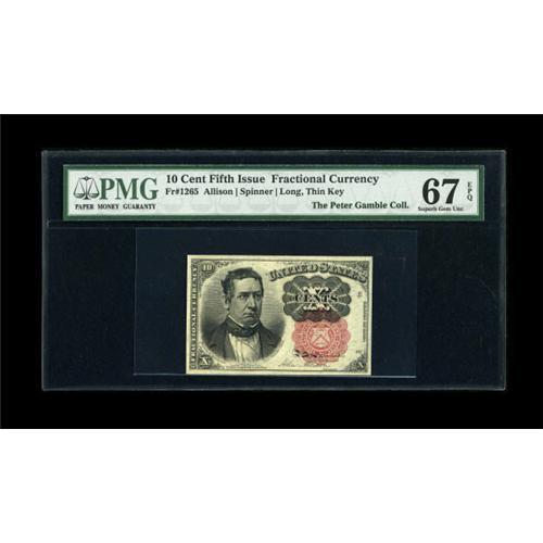 <B>Fr. 1265 10c Fifth Issue PMG Superb Gem Unc 67 EPQ.</B></I> Perfectly even margins are noted on this Superb issue.<BR><I>From The Peter Gamble Collection.</B></I><BR><BR><b>Shipping:</b> Coins & Currency (<a target="_blank" href="http://www.heritageauctions.com/common/shipping.php">view shipping information</a>)