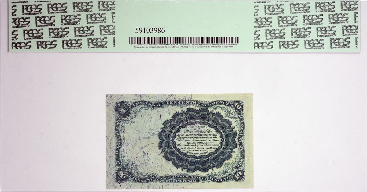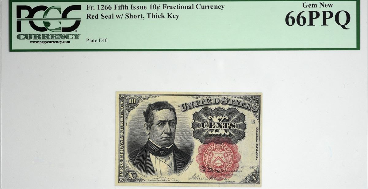 Fr. 1266. 10 Cent. Fifth Issue. PCGS Currency Gem New 66 PPQ. A vibrant example of this more available type and seen with all the quality one could expect for such a lofty grade level.