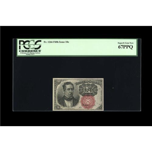 <B>Fr. 1266 10c Fifth Issue PCGS Superb Gem New 67PPQ.</B></I> This is only the second note of this grade to grace one of our auctions. Simply a dazzling representative with huge margins.