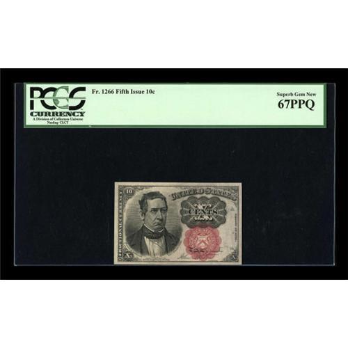 <B>Fr. 1266 10c Fifth Issue PCGS Superb Gem New 67PPQ.</B></I> Despite being a common issue, this lofty state of preservation is somewhat elusive with only a few having graced our auction since the arrival of the two newest third-party grading services, PMG and PCGS.<BR><BR><b>Shipping:</b> Coins & Currency (<a target="_blank" href="http://www.heritageauctions.com/common/shipping.php">view shipping information</a>)