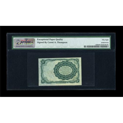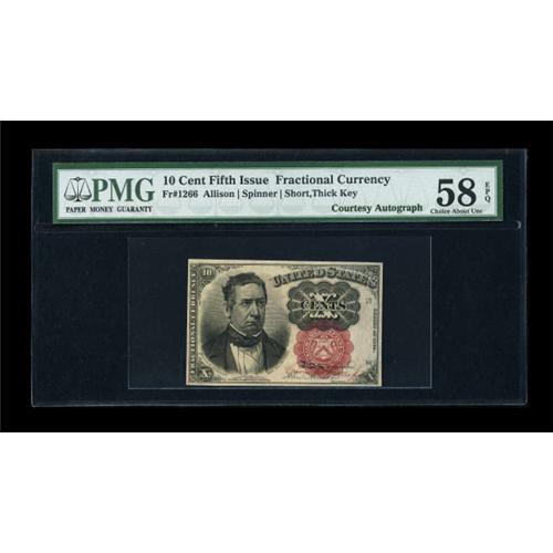 <B>Fr. 1266 10c Fifth Issue Courtesy Autograph PMG Choice About Unc 58 EPQ.</B></I> Carmi A. Thompson signs below Spinner's signature in red ink.<BR><BR><b>Shipping:</b> Coins & Currency (<a target="_blank" href="http://www.heritageauctions.com/common/shipping.php">view shipping information</a>)