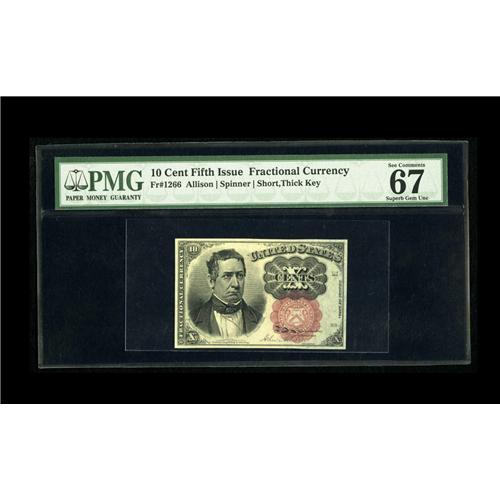 <B>Fr. 1266 10c Fifth Issue PMG Superb Gem Unc 67 EPQ.</B></I> A common note in uncommon condition. Examination of the portrait of Secretary of the Treasury William Meredith, honored on this note, will give hope that even those with challenged grooming standards can successfully aspire to careers in public service at the highest levels.<BR><BR><b>Shipping:</b> Coin/Currency (<a target="_blank" href="http://www.heritageauctions.com/common/shipping.php">view shipping information</a>)