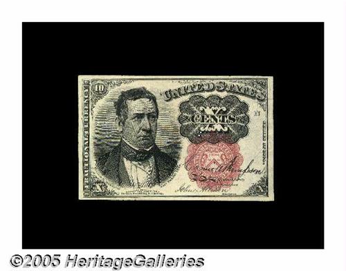 <B>Fr. 1266 Milton 5R10.2m 10¢ Fifth Issue Courtesy Autograph Gem New.</B></I> Boldly courtesy autographed in black by Carmi A. Thompson across the red seal.