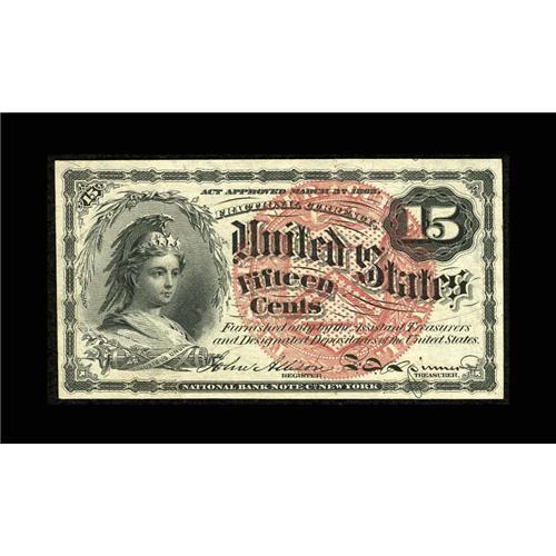 <B>Fr. 1267 15¢ Fourth Issue Choice About New.</B></I> Beautifully margined 15¢ note that has a single extremely light centerfold, and the appearance of a perfect Gem.<BR><BR><b>Shipping:</b> Coins & Currency (<a target="_blank" href="http://www.heritageauctions.com/common/shipping.php">view shipping information</a>)