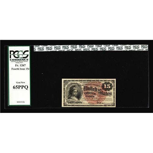 Fr. 1267 15¢ Fourth Issue PCGS Gem New 65PPQ. A bright, Fr. 1267 15¢ Fourth Issue PCGS Gem New 65PPQ