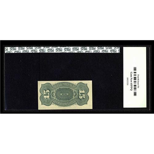<B>Fr. 1267 15¢ Fourth Issue PCGS Gem New 65PPQ.</B></I> A bright, well centered, strictly original example that's clearly earned its grade.