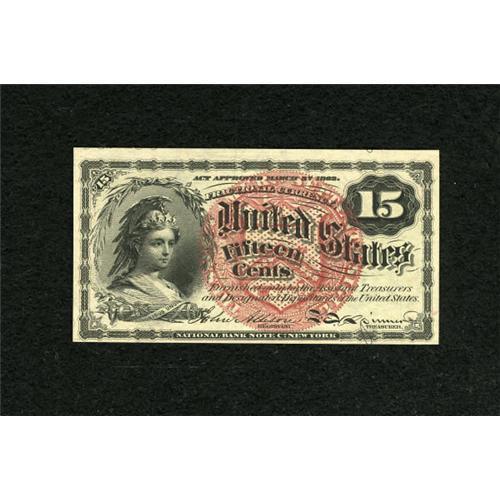 <B>Fr. 1267 15c Fourth Issue Choice New.</B></I> Only a smaller bottom margin prohibits a higher grade on this heavily watermarked note.<BR><BR><b>Shipping:</b> Coins & Currency (<a target="_blank" href="http://www.heritageauctions.com/common/shipping.php">view shipping information</a>)