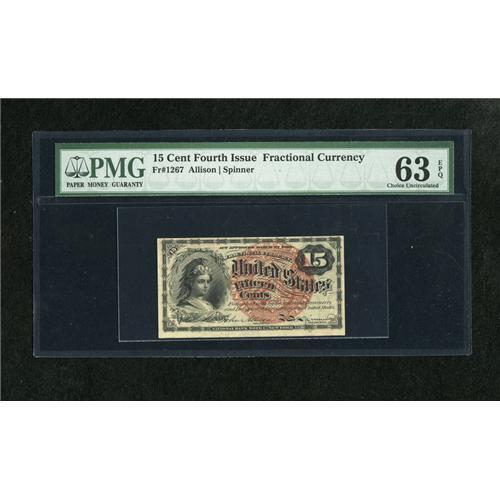 Fr. 1267 15c Fourth Issue PMG Choice Uncirculated 63 EP