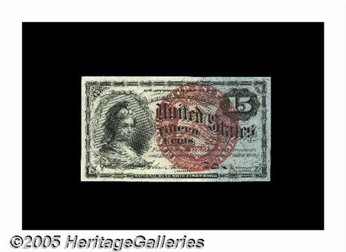 <B>Fr. 1269 Milton 4R15.4 15¢ Fourth Issue Superb Gem New.</B></I> One of the freshest, nicest, most brilliantly colored 15 Cent notes we have ever handled. Hugely margined and pristine.
