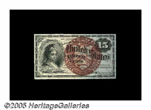 <B>Fr. 1269 Milton 4R15.4 15¢ Fourth Issue Superb Gem New.</B></I> A gorgeous note, with a boldly printed seal that tends toward the maroon color, making for a very visually striking example.