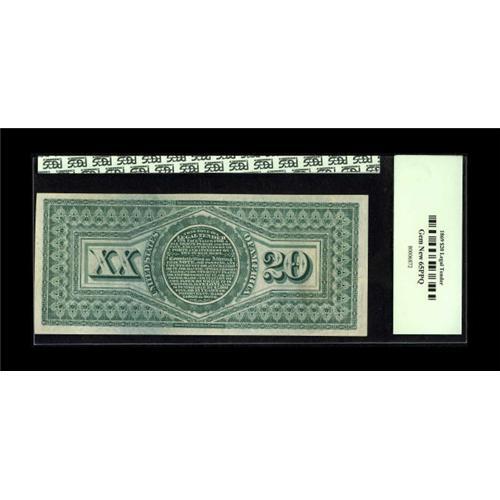 48B. CURRENCY – Notes sold referencing a third-party grading service are sold "as is" without any express or implied warranty, except for a guarantee by Auctioneer that they are genuine. Grading, condition or other attributes of any lot may have a material effect on its value, and the opinion of others, including independent grading services such as PCGS Currency, PMG, and CGA may differ with that of Auctioneer. Auctioneer shall not be bound by any prior or subsequent opinion, determination, or certification by any independent grading service. The grades assigned by any grading service to any note offered in any Heritage Currency Auctions of America sale represent the opinion of that grading service only,and may differ in material respects from the grade assigned to the same note in previous sales by HCAA or other auction companies, or from the grade that would be assigned by any other grading service. HCAA is unable to view any third party graded item outside of the holder, and specifically disclaims any liability of any kind to bidders who bid on third party graded items for mistakes of commission or omission by any grading service. Bidders are hereby notified that currency grading standards have changed in the past and are subject to change in the future, and that the only remedy bidder has with respect to third party graded notes is to deal directly with the grading service certifying the item. Bidders are also advised that Auctioneer makes no representation or guarantee that any item obtained by Bidder will be assigned any particular grade by any particular grading service, and as noted herein, Bidder specifically waives any claim to right of return of any item because of the opinion, determination, or certification, or lack thereof, by any independent grading service. Certain warranties may be available from the grading services and the Bidder is referred to them for further details: Paper Money Guaranty (PMG), PO Box 4711, Sarasota FL 34230; PCGS Currency, PO Box 9458, Newport Beach, CA 92658; Currency Grading & Authentication (CGA), PO Box 418, Three Bridges, NJ 08887.