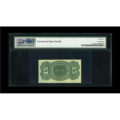 48B. CURRENCY – Notes sold referencing a third-party grading service are sold "as is" without any express or implied warranty, except for a guarantee by Auctioneer that they are genuine. Grading, condition or other attributes of any lot may have a material effect on its value, and the opinion of others, including independent grading services such as PCGS Currency, PMG, and CGA may differ with that of Auctioneer. Auctioneer shall not be bound by any prior or subsequent opinion, determination, or certification by any independent grading service. The grades assigned by any grading service to any note offered in any Heritage Currency Auctions of America sale represent the opinion of that grading service only,and may differ in material respects from the grade assigned to the same note in previous sales by HCAA or other auction companies, or from the grade that would be assigned by any other grading service. HCAA is unable to view any third party graded item outside of the holder, and specifically disclaims any liability of any kind to bidders who bid on third party graded items for mistakes of commission or omission by any grading service. Bidders are hereby notified that currency grading standards have changed in the past and are subject to change in the future, and that the only remedy bidder has with respect to third party graded notes is to deal directly with the grading service certifying the item. Bidders are also advised that Auctioneer makes no representation or guarantee that any item obtained by Bidder will be assigned any particular grade by any particular grading service, and as noted herein, Bidder specifically waives any claim to right of return of any item because of the opinion, determination, or certification, or lack thereof, by any independent grading service. Certain warranties may be available from the grading services and the Bidder is referred to them for further details: Paper Money Guaranty (PMG), PO Box 4711, Sarasota FL 34230; PCGS Currency, PO Box 9458, Newport Beach, CA 92658; Currency Grading & Authentication (CGA), PO Box 418, Three Bridges, NJ 08887.