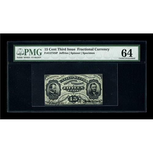 <B>Fr. 1272SP/1274SP 15c Third Issue PMG Choice Uncirculated 64.</B></I> This Grant/Sherman pair has been glued together and third party graded. These certainly would have been well received had they actually circulated.<BR><BR><b>Shipping:</b> Coins & Currency (<a target="_blank" href="http://www.heritageauctions.com/common/shipping.php">view shipping information</a>)