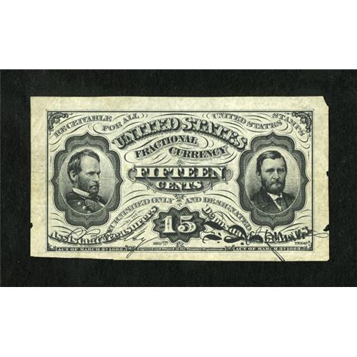 <B>Fr. 1272SP 15c Medium Margin Face. Third Issue Very Fine. </B></I> This medium margin note has been cut down from a wide margin specimen. The edges show chipping and there is an approximate quarter inch tear at bottom center.<BR><I>From The Amelia Island Collection.</B></I><BR><BR><b>Shipping:</b> Coins & Currency (<a target="_blank" href="http://www.heritageauctions.com/common/shipping.php">view shipping information</a>)
