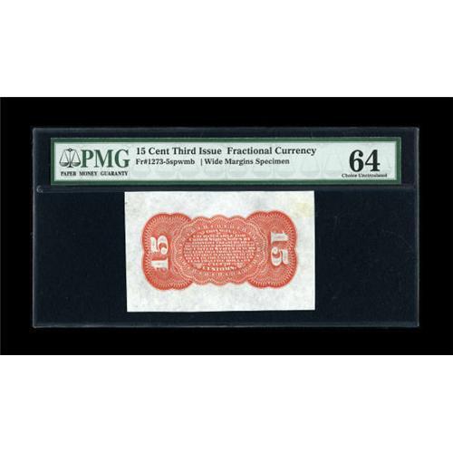 <B>Fr. 1273/5SP 15c Third Issue PMG Choice Uncirculated 64.</B></I> This is a deeply hued red back Grant/Sherman specimen with wide margins.<BR><BR><b>Shipping:</b> Coins & Currency (<a target="_blank" href="http://www.heritageauctions.com/common/shipping.php">view shipping information</a>)