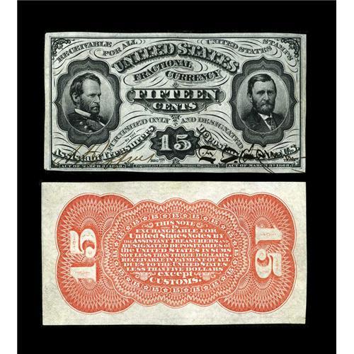 <B>Fr. 1274SP 15¢ Third Issue Narrow Margin Pair Very Choice New.</B></I> Cut down from wide margins as the margins are broader than typically seen. The signatures are strong, the colors are excellent, and the pair has great eye appeal.<BR><BR><b>Shipping:</b> Coins & Currency (<a target="_blank" href="http://www.heritageauctions.com/common/shipping.php">view shipping information</a>)