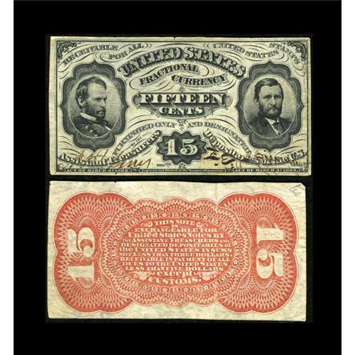 <B>Fr. 1274SP 15¢ Third Issue Narrow Margin Pair Extremely Fine. </B></I> The face has a top and a bottom edge tear with each tear being approximately a half an inch. The Red Back has good embossing and it is closer to the About New grade.<BR><BR><b>Shipping:</b> Coins & Currency (<a target="_blank" href="http://www.heritageauctions.com/common/shipping.php">view shipping information</a>)