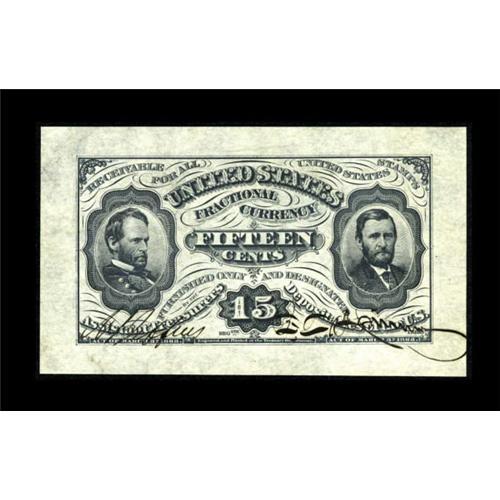 <B>Fr. 1274SP 15c Third Issue Wide Margin Face Gem New.</B></I> Perfectly penned signatures of Jeffries and Spinner are noted on this wide margin issue. The margins are broad and perfectly even.<BR><BR><b>Shipping:</b> Coins & Currency (<a target="_blank" href="http://www.heritageauctions.com/common/shipping.php">view shipping information</a>)