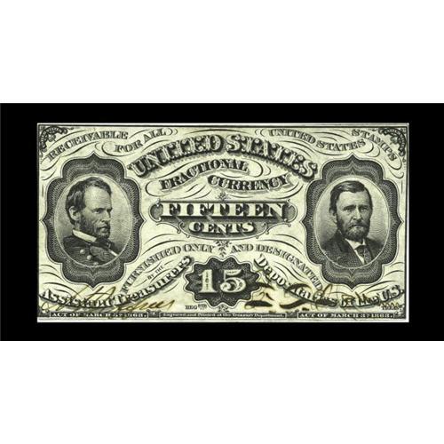 <B>Fr. 1274SP 15c Third Issue Narrow Margin Face Specimen Choice New.</B></I> This autographed note has problem-free signatures, while it was once mounted with a handful of stamp hinges. Also, a small blue fountain pen ink dot is found on the back and a light paper clip indentation is also noticed.