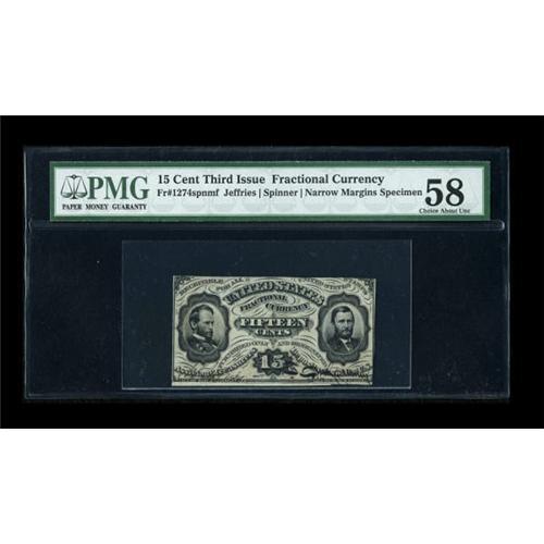 <B>Fr. 1274SP 15c Third Issue PMG Choice About Unc 58.</B></I> The top margin is a little tight on this example with strong signatures.<BR><BR><b>Shipping:</b> Coins & Currency (<a target="_blank" href="http://www.heritageauctions.com/common/shipping.php">view shipping information</a>)