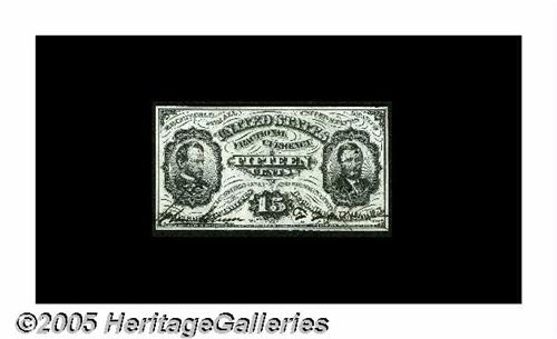 <B>Fr. 1275SP 15¢ Third Issue Narrow Margin Pair Superb Gem New.</B></I> Milton 3S15F.4 and Milton 3S15R.1. An absolutely gorgeous pair, neither of which has been mounted as both boast their deep original embossing. Super quality.