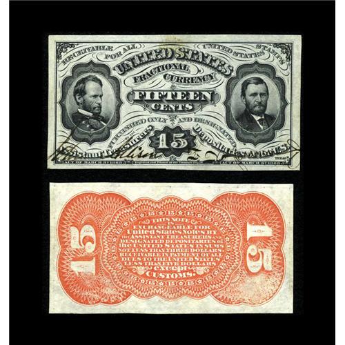 <B>Fr. 1275SP 15¢ Third Issue Narrow Margin Pair Very Choice New.</B></I> There is a minor stain at the top center of the face on this otherwise Gem pair. The hand signatures are bold and the pair has broader margins than are typically seen on Narrow Margin Specimens.<BR><BR><b>Shipping:</b> Coins & Currency (<a target="_blank" href="http://www.heritageauctions.com/common/shipping.php">view shipping information</a>)