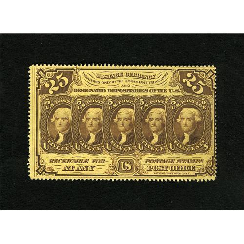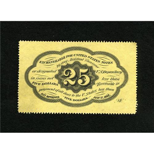 <B>Fr. 1279 25c First Issue Choice New.</B></I> A lovely example of this perforated type note that has nice paper quality and bold color. A couple tiny pinholes are noticed.<BR><BR><b>Shipping:</b> Coins & Currency (<a target="_blank" href="http://www.heritageauctions.com/common/shipping.php">view shipping information</a>)