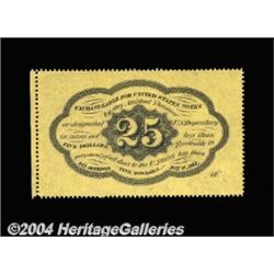Fr. 1279 25c First Issue Gem New. A gorgeous perforated note, with full, deep perforations all the way around, and a strip of margin outside the perforations at the right. The back is perfectly centered, and the face centering is only slightly less than perfect. A nice, original note with ideal paper surfaces. Very tough to find this high quality. <BR><BR><B>Important notice:</B> Heritage usually auctions material at the rate of 200-250 lots per hour. On some occasions eBay Live bid software or the Internet may not be able to keep up with the pace of the auction. We recommend placing a realistic absentee bid now as insurance to avoid disappointment. Occasionally the auctioneer may eliminate or reject an eBay Live bid, and the auctioneer may also reopen a lot after the close of the eBay live bidding (usually because we missed an audience bid), and may reject your bid even if it shows you as the winning bidder. By bidding via eBay Live, you agree that Heritage may award the lot to another bidder at its sole discretion under the circumstances described above or any other reasonable circumstances. Since eBay bids are not shown to us until we open the lot on the floor, we treat those bids just like floor bids. In most cases the floor responds before the eBay bid is presented to us, due to Internet lag time, so for consistency we have made it a policy that floor bids are always considered first over tie eBay live bids. Also please note that all Heritage lots purchased through eBay Live carry a 20% Buyer's Premium. Please make sure you read the Terms and Conditions before you bid. <BR><BR><B>IMPORTANT ANNOUNCEMENT ABOUT RESERVES:</B> Heritage now divulges all reserves on its web site 7 days before every auction. If you want to know whether the reserve on this lot has been met, and if not, what the reserve amount is, please visit this lot page on the HeritageCoin.com web site, or email: bid@HeritageGalleries.com