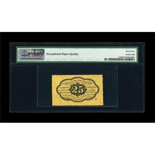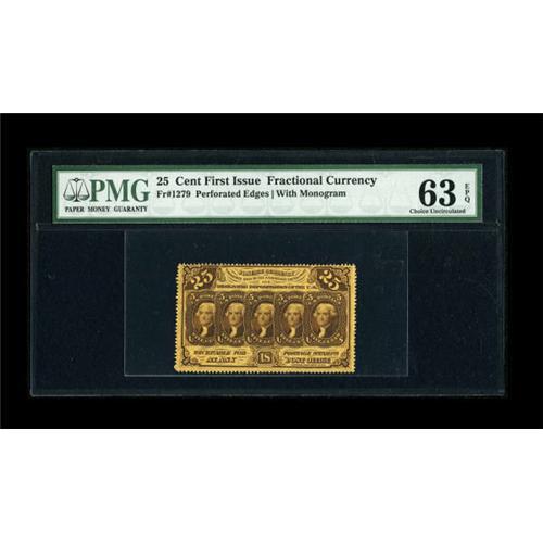 <B>Fr. 1279 25c First Issue PMG Choice Uncirculated 63 EPQ.</B></I> The perfs are in a little close along the top on this otherwise bright and well centered representative. <BR><BR><b>Shipping:</b> Coins & Currency (<a target="_blank" href="http://www.heritageauctions.com/common/shipping.php">view shipping information</a>)