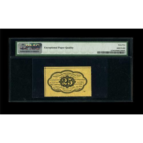 <B>Fr. 1279 25c First Issue PMG Gem Uncirculated 65 EPQ.</B></I> A super little note, perfect perforations almost all the way around, including a margin strip outside the perforations on top and at the right. Bright, fresh, strictly original and as pretty as they get.<BR><BR><b>Shipping:</b> Coins & Currency (<a target="_blank" href="http://www.heritageauctions.com/common/shipping.php">view shipping information</a>)
