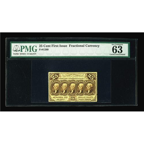 Fr. 1280 25c First Issue PMG Choice Uncirculated 63. Fr. 1280 25¢ First Issue PMG Choice Uncirculate