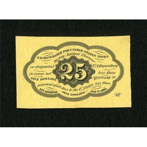 <B>Fr. 1281 25c First Issue Choice New.</B></I> This first issue type note is printed on bright yellow paper and has great eye appeal.<BR><BR><b>Shipping:</b> Coins & Currency (<a target="_blank" href="http://www.heritageauctions.com/common/shipping.php">view shipping information</a>)
