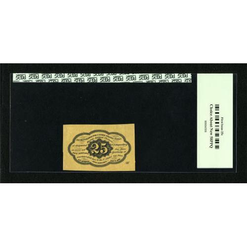 <B>Fr. 1281 25c First Issue PCGS Choice About New 58PPQ.</B></I> A corner fold is seen through the PCGS holder.<BR><BR><b>Shipping:</b> Coins & Currency (<a target="_blank" href="http://www.heritageauctions.com/common/shipping.php">view shipping information</a>)