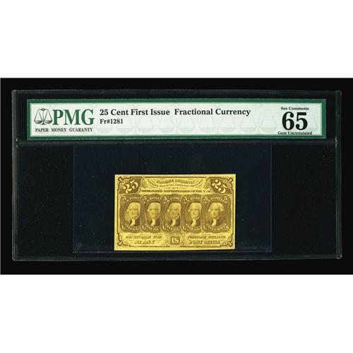 Fr. 1281 25c First Issue PMG Gem Uncirculated 65. Fr. 1281 25c First Issue PMG Gem Uncirculated 65.