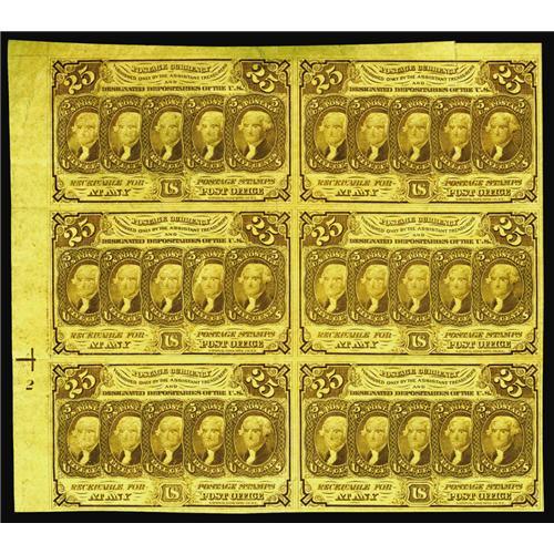 Fr. 1281 25c First Issue Uncut Block Of Six About New. Fr. 1281 25c First Issue Uncut Block Of Six A