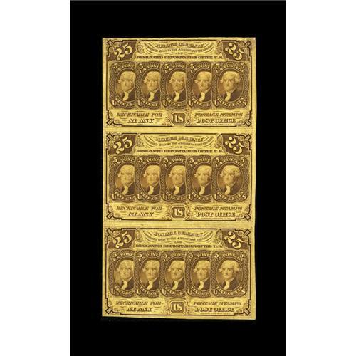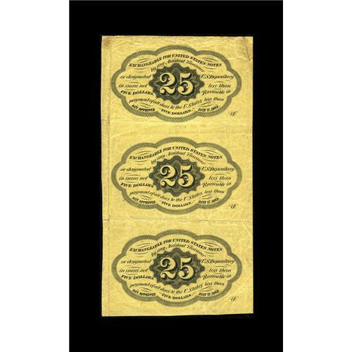 <B>Fr. 1281 25c First Issue Vertical Strip of Three Extremely Fine.</B></I> This is a very attractive vertical strip of three notes which have some folds but which appears to be a higher grade when viewed from the face.