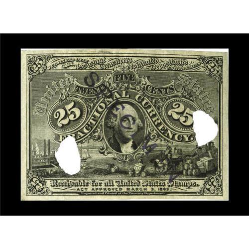 <B>Fr. 1283 25c Second Issue Experimental Gem New.</B></I> This is a lovely experimental that is a real beauty in every regard. The margins are broad and even with deep embossing and superb printing. This is the type without bronzing and blank back with the usual two half moon cancellations.