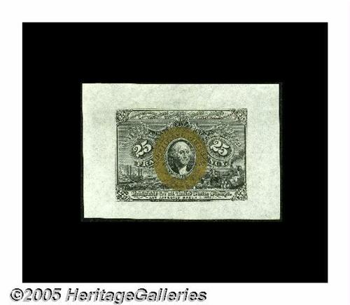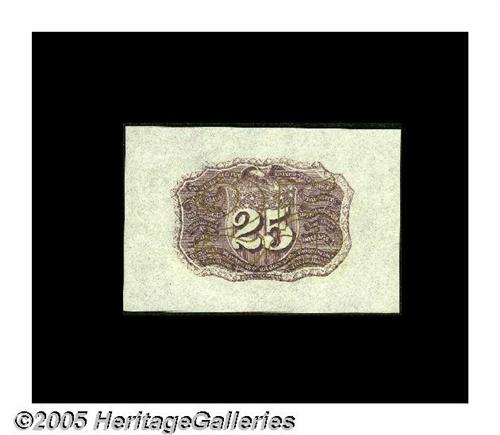 <B>Fr. 1283SP 25¢ Second Issue Wide Margin Pair Superb Gem New.</B></I> Milton 2P25F.1, 2P25R.1a. A glorious pair, with exceptionally wide margins, perfect colors of the inks, bronze and paper and incredible eye appeal. Both the face and back exhibit their full deep, original embossing.