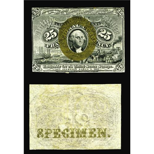 <B>Fr. 1283SP 25c Second Issue Narrow Margin Pair Choice New.</B></I> A very attractive matching pair, with the bronzing on the front simply gorgeous for this issue. You also have a partial "S" and a complete "A" from the CSA watermark on the face note.