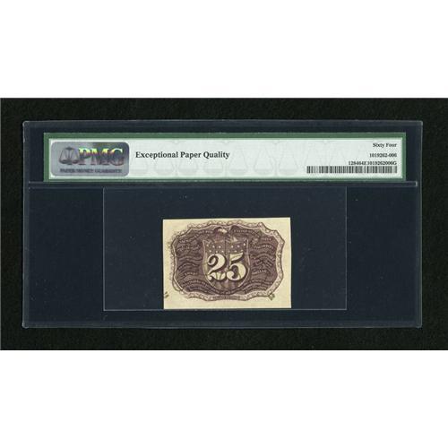 <B>Fr. 1284 25c Second Issue PMG Choice Uncirculated 64 EPQ.</B></I> A reflective bronze overprint and plate number 60 in the upper left-hand corner are noticed on this very attractive note.<BR><BR><b>Shipping:</b> Coins & Currency (<a target="_blank" href="http://www.heritageauctions.com/common/shipping.php">view shipping information</a>)
