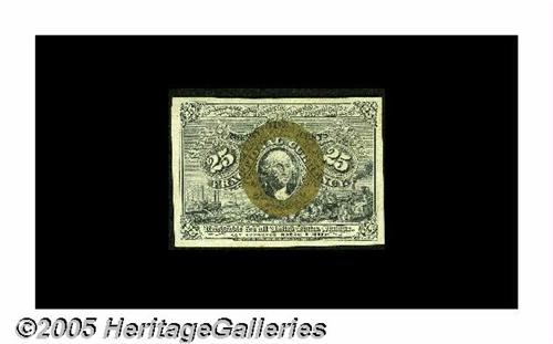 <B>Fr. 1286 25¢ Second Issue Very Choice New.</B></I> A near-Gem example of the number that almost never comes this nice. The face margins are incredible and the back is centered just a touch toward the left. There are some natural-as-made paper ripples running horizontally across the top of the note, but they affect neither the appearance nor the grade.