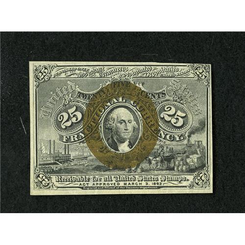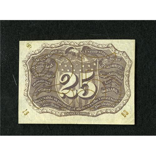 <B>Fr. 1286 25c Second Issue Choice New.</B></I> The paper surfaces are somewhat flat but the eye appeal is superb on this tougher number with "S-18-63" surcharges.<BR><BR><b>Shipping:</b> Coins & Currency (<a target="_blank" href="http://www.heritageauctions.com/common/shipping.php">view shipping information</a>)