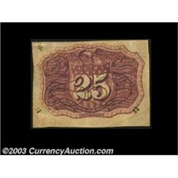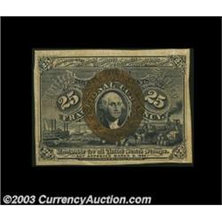 Fr. 1286 25c Second Issue Inverted "S" Extremely Fine. A rare and underappreciated variety, with the "S" from the "S-18-63" surcharge inverted. This Error is more common on the 25c Experimental Issues with the same surcharge, but it is rarely seen on a regular-issue note. When Milt Friedberg's Fractional Encyclopedia was published in the late '70s, only two examples were known to exist. The count has subsequently risen to five, and with the discovery of this piece, there are now six known. The inversion can be clearly seen on this note, with the elaborate loop that should appear at the bottom left appearing instead at the upper right. The note is well margined and shows only the barest signs of circulation, plus a few light folds. An important note that should reach or exceed . . .  Important notice: Heritage usually auctions material at the rate of 200-250 lots per hour. On some occasions eBay Live bid software or the Internet may not be able to keep up with the pace of the auction. We recommend placing a realistic absentee bid now as insurance to avoid disappointment. Occasionally the auctioneer may eliminate or reject an eBay Live bid, and the auctioneer may also reopen a lot after the close of the eBay live bidding (usually because we missed an audience bid), and may reject your bid even if it shows you as the winning bidder. By bidding via eBay Live, you agree that Heritage may award the lot to another bidder at its sole discretion under the circumstances described above or any other reasonable circumstances. Also please note that all Heritage lots purchased through eBay Live carry a 20% Buyer's Premium. Please make sure you read the Terms and Conditions before you bid.