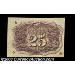 Fr. 1286 25c Second Issue Inverted "S" Very Choice New. From our January 2001 sale of the Dr. Scheuermann Collection, where it was described, "About ten examples of this variety are known, and this is one of the very finest. Although the S is not fully sharp, it is unquestionably the inverted variety, and the overall appearance of the note is quite nice. A popular note that will undoubtedly see considerable bidder interest. Dr. Scheuermann acquired it as Lot 1248 from Stack's September 1993 sale. Prior to that, it had been in a Robert Siegel sale." Important notice: Heritage usually auctions material at the rate of 200-250 lots per hour. On some occasions eBay Live bid software or the Internet may not be able to keep up with the pace of the auction. We recommend placing a realistic absentee bid now as insurance to avoid disappointment. Occasionally the auctioneer may eliminate or reject an eBay Live bid, and the auctioneer may also reopen a lot after the close of the eBay live bidding (usually because we missed an audience bid), and may reject your bid even if it shows you as the winning bidder. By bidding via eBay Live, you agree that Heritage may award the lot to another bidder at its sole discretion under the circumstances described above or any other reasonable circumstances. Also please note that all Heritage lots purchased through eBay Live carry a 20% Buyer's Premium. Please make sure you read the Terms and Conditions before you bid.
