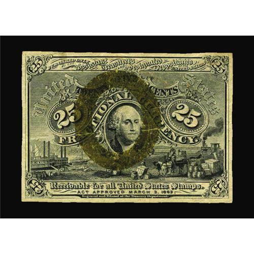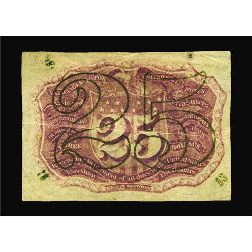 <B>Fr. 1286 25c Second Issue Inverted "S" Very Fine.</B></I> One of seven or eight examples known. This Inverted "S" is a new piece to the short census for this type. The "S" unfortunately is not particularly clear, but to those who have studied these varieties for years, the shape is unmistakable.