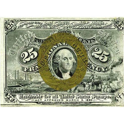 <B>Fr. 1288 25c Second Issue Choice New.</B></I> This scarce note was purchased from Abe Kosoff many years ago and its quality still shines through. The surcharges are distinct, the bronze oval is fully emblazoned and it is neatly centered over the portrait. The right-hand margin hugs the frame line on this delightful note.