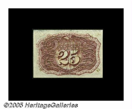 <B>Fr. 1288 Milton 2R25.6a 25¢ Second Issue Very Choice New.</B></I> Very close to the full Gem grade, with a nice distinct "2" in the surcharge. Beautiful colors.