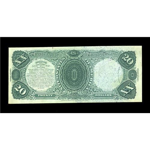 <B>Fr. 129 $20 1878 Legal Tender Very Choice New.</B></I> An absolutely gorgeous example, purchased by our consignor several decades ago for $175. It has spectacular color, ideal paper surfaces, original embossing and great eye appeal. The note would be a perfect Gem if the top face margin did not slope down to the right, where it becomes a bit too narrow for the top grade.